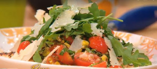 Top each chicken cutlet with a cup of the baby arugula and some of the warm zucchini-corn sauce. Top with the Pecorino pepato curls.