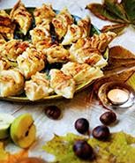 Grädda i övre delen av ugnen i 20–30 minuter. Äpplena ska bli mjuka och brödet ska ha fått färg på undersidan.