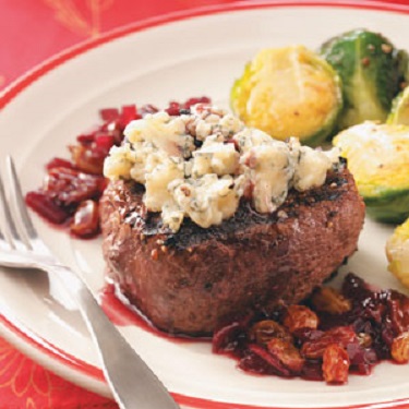 Meanwhile, in a small saucepan, combine the wine, onion, raisins,
