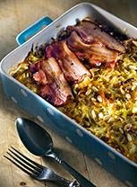 Kasslerskivor kan ställas in i ugnen för att värmas en stund medan gratängen blir klar, sidfläsk är godast att steka i panna på spisen.