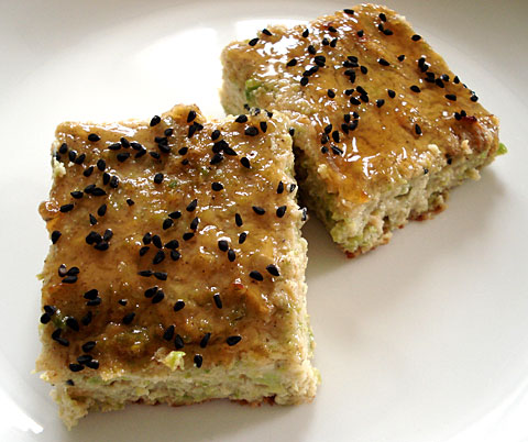 Spread the glaze over the warm loaf, and scatter with sesame seeds or kalongi (nigella) seeds or poppy seeds (optional). Let cool completely, and cut into 9 squares (or smaller if you prefer).