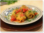 Fill and roll cabbage leaves to make 10-12 small burrito-shaped logs. Arrange in the skillet with the sauce and bring to a boil. Cover and cook over low heat for 30 minutes.