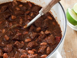Blade steak was easy to cut into pieces and cooked up tender, so it served as the base of our chili recipe. We avoided the grittiness of supermarket chili powders by making our own. Adding cornmeal to our chili powder thickened the chili. For secret ingredients, our chili recipe relies on lager, unsweetened cocoa, and molasses.