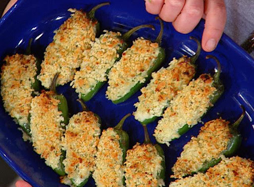 In a small dish, combine panko with Parmigiano-Reggiano. Fill your jalapeño boats mounding the filling up a bit. Roll the filling in the panko. Arrange the poppers on a baking dish, spray lightly with cooking spray and bake until breadcrumbs are evenly brown and filling is bubbly, about 18-20 minutes. Let stand 10 minutes and serve.
