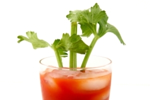 Add vodka and tomato juice, and shake. Strain over glass filled with ice, and garnish with celery before serving.
