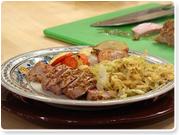 Roast Pork Tenderloins with Roasted Carrot, Parsnip, Potato and Warm Apple and Savoy Cabbage Slaw