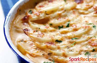 1. Layer potatoes and onions in casserole, sprinkling flour between each layer.