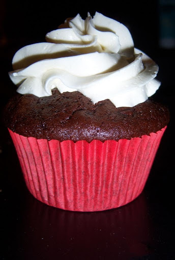 Preheat your oven to 350 degrees and line a cupcake pan with paper liners. Mix together flour, cocoa, baking soda and salt in a small bowl. In a large bowl, whisk together sugar, oil, egg and vanilla until smooth. Alternately whisk in flour mixture and buttermilk until smooth. Stir in chocolate chips. Scoop batter into pan and bake 22-27 minutes until tops of cupcakes spring back when lightly touched. Cool in pans for 10 minutes, then remove and cool completely on wire rack.