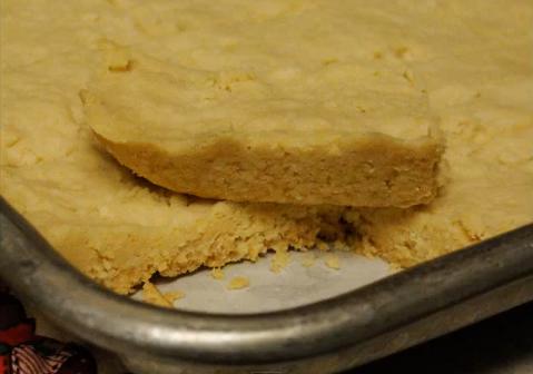 Remove from oven and sprinkle with 1 Tablespoon sugar. Cool for 10 minutes before cutting with a sharp knife. Let cookies cool before removing.