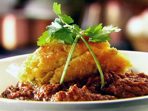 In a large soup pot, heat the olive oil. Season the beef shoulder all over with salt and pepper, add it to the pot and brown it. As it's browning stir in the chili powder, coriander, cumin, paprika, oregano and cinnamon. Lower the temperature under the meat to "toast" the spices. In a food processor puree the onions, garlic, chipotle peppers, jalapeno, tomato paste and sugar and add it to the pot. Increase the heat to medium to steam vegetables a little and sweeten the peppers. Add enough water to cover by 1 inch, about 1 quart, and add tomatoes with their liquid. Bring to a boil and skim off any foam that rises to the surface. Reduce the heat and simmer until the meat is fork-tender and comes apart with no resistance, about 2 hours. As it cooks down, add more water, if necessary. When done, stir in the masa harina. Take a potato masher and mash the chili so the meat comes apart in shreds. Season with salt and pepper, to taste. Garnish each serving with the shredded Cheddar, chives, and sour cream.