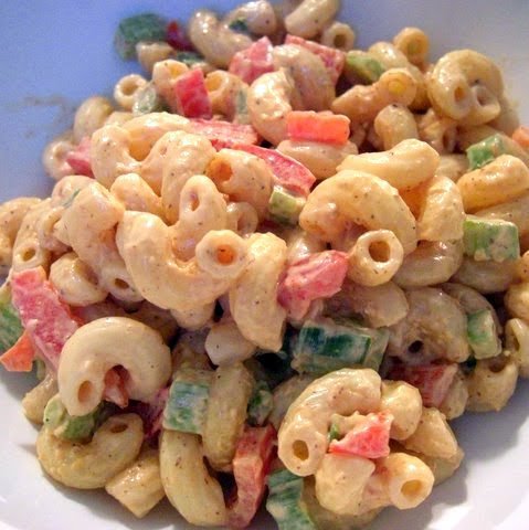 Boil your elbow macaroni with 1 tablespoon table salt, until nearly tender about 5 minutes. Drain in colander and rinse with cold water, then drain once more briefly, so that pasta is still moist; transfer to large bowl.