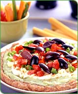 Spread bean dip on bottom of a 12 inch round glass serving bowl or edged-platter.