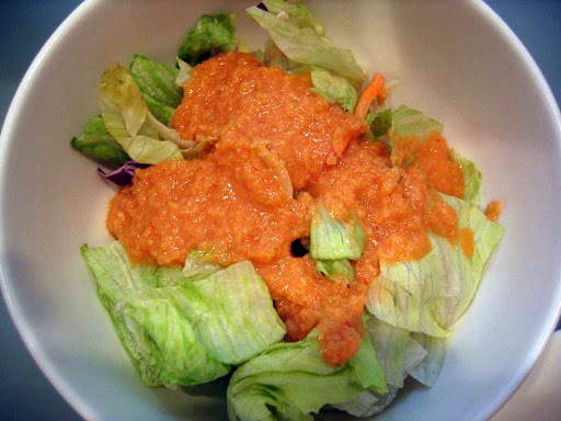 Combine all ingredients in a blender or food processor and process until very smooth. Makes enough to fill a tupperware squeeze bottle. Refridgerate. *Note...I found the 3 Tablespoons of fresh ginger root to be a little hot, so you might try using the chopped ginger in a jar because it is a little milder than the fresh. Also, you can add a little more soy sauce if you would like! It has the best flavor after it has been refrigerated a day or two!