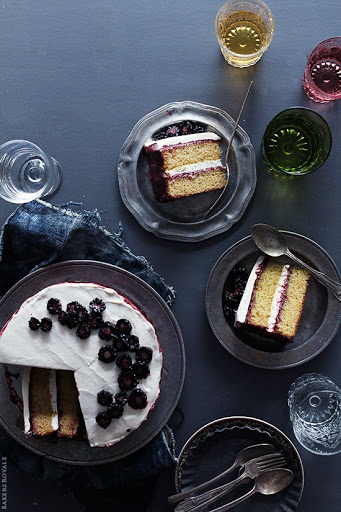 **Optional: Slice and place blackberries on top of cake to finish. (Do not add sliced blackberries until time of serving or they will bleed onto the frosting.)