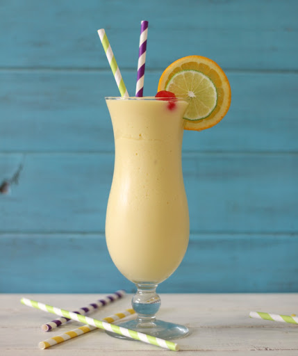 I thought I would dress up the smoothie by adding a little slice of orange and lime and of course a maraschino cherry! Love those cherries! I thought I would put an umbrella in the drink, but then I realized this is Mardi Gras, not Cinco de Mayo! You know whats funny? I like to dunk my cherries in my drink and let it sink to the bottom. Then when my drink is done I have a little cherry surprise left. I know crazy, huh? I am a tad odd.