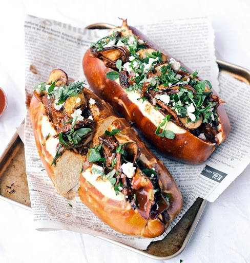 5. Heat up yo buns (oh you like that, don’t you). Spread some mayo on them if you want, if not, simply scoop the hot BBQ pulled mushroom mix into the buns, add feta cilantro topping and dig in!