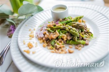 Celebrate spring with this wonderful salad. Asparagus, one of the first vegetables ready for harvest in the spring is combined with farro, an ancient grain with a nutty flavor and creamy texture.