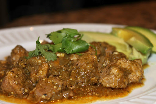 Cut pork roast into ½ inch cubes. Heat the coconut oil over medium high in a large soup pot and add the pork once the oil is hot enough that it sizzles when you add a piece of meat. Brown the pork pieces for 4-5 minutes and remove the pork from the pan with a slotted spoon and set aside. Add the onions and garlic to the oil and pork drippings and sauté for 7-10 min or until the onions start to brown. Turn the heat down a bit and add the cumin, paprika and black pepper to the onions and garlic and mix well (it will be kind of pasty). Add the chicken broth to the onion mixture and mix well, making sure to scrape all the goodness off the bottom of the pan. Add the pork back to the soup pot into the liquid and bring to a boil. Turn down to low. While the meat simmers, peel and wash the tomatillos. Dry them well and in a large skillet over medium heat char them along with the jalapeno turning often, until the skins start to blacken (about 10 minutes). Place the charred tomatillos, jalapeno, cilantro, and lime juice into a food processer or blender and blend until smooth. Add to the pork in the soup pot and simmer for 2 to 2 ½ hours or until the pork is fall apart tender. The sauce will reduce down and become thicker over the course of the cooking process. Serve with sliced avocado and cilantro for garnish