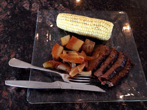 Approximately 45 minutes before it was done, I added some fresh sweet white corn that had been shucked and rolled in foil.