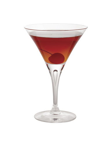 The drink can be layered in a high ball glass -OR- shaken with ice and served in a fancy cocktail glass. Garnish with a cherry.