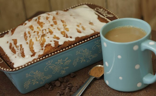 Pour batter into greased loaf pan and top with chocolate chips. Gently stir chocolate chips into the batter.