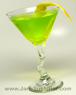 In a cocktail shaker filled with ice, add the vodka and pineapple juice. Shake. Strain into a martini glass. Slowly pour the melon liqueur into the glass. It will sink to the bottom. Garnish with frozen melon balls skewered on stir-sticks and serve immediately.