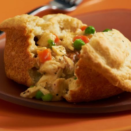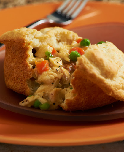 Combine the chicken, peas and carrots, 1 can of the chicken gravy, salt, pepper, and 1 tsp of the thyme and mix until incorporated. Divide the mixture evenly among 6 cups of a 12-cup muffin pan. Cover the pan with plastic wrap and freeze overnight, or until you’re ready to bake the muffins.