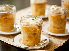 Fill each of the jars or ramekins about a 1/4 full with pineapple and some of the juices.