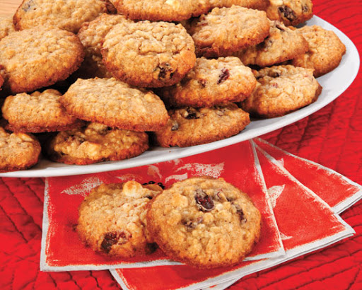 Preheat oven to 350°. In a medium bowl, sift together the flour, baking soda, baking power, CINNAMON and salt. Set aside. In a large bowl, cream together the butter and sugar until fluffy. Mix in the honey and VANILLA. Beat until fluffy. Add the eggs, one at a time, and beat until fully incorporated. Mix in the coconut, Craisins, chocolate chips and oats. Fold in the flour mixture and mix well. Form into 1-inch balls and place on ungreased cookie sheets. Bake at 350° for 13-15 minutes or until lightly browned.