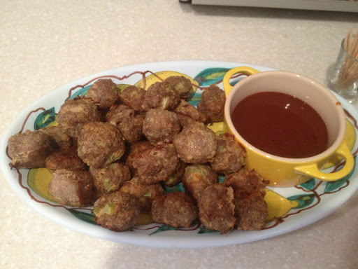 Roll into 3/4-inch balls. Place into baking dish. The meatballs should be touching one another.