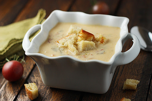• 5 slices bacon, finely diced, plus crisp crumbles bacon for garnish