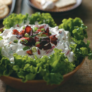 Mix sour cream, mayo and crumbled bacon and tomatoes in a bowl. Cover and refrigerate at least an hour to blend flavors.