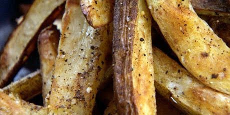 5. Drizzle with oil, sprinkle with salt, pepper and paprika. Bake till tender and golden crispy outside - about 40 minutes.