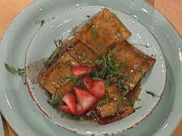 Add balsamic vinegar to the pan and cook a minute or two longer to reduce the vinegar and glaze the ravioli. The vinegar will become thick and syrup-like. Add cheese, salt and pepper to the pasta and transfer to a platter or serving plate. Garnish with some of the basil and strawberries.