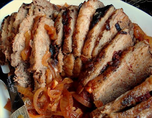 Brown roast on all sides in hot oil in a large ovenproof Dutch oven over medium-high heat. Add onion. Remove Dutch oven from heat.
