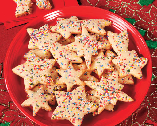 Preheat oven to 350°. Roll out the dough portions, one at a time, to a thickness of about 1/8-inch. Sprinkle generously with candy non-pareil dots and press into the dough with a rolling pin. Cut into pieces with your favorite cookie cutters, or just cut across and up-and-down to form rough squares and irregular corners and edges. Place on ungreased baking sheets. Bake at 350° for about 10-12 minutes or until lightly golden brown at the edges.