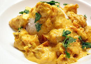 Cut the squash into small pieces and simmer it with onions, cumin, ginger, curry, and a bayleaf until it is soft and flavorful..