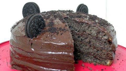 Slice each cake horizontally so you have 4 layers of cake. Place one of the cake slices cut side up on the plate. Top with some frosting and smooth to about 1/2 inch from edge. Repeat the process with the remaining 3 layers. Then frost the top and sides of cake. Decorate the cake with reserved cookies, cookie crumbs, any way you wish.