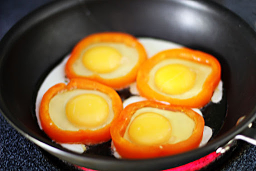 To give this more of a Southwestern flare, you could add some finely chopped jalapeno (and maybe some finely chopped mushrooms!) inside the bell peppers when you first add them to the skillet. Then just crack the egg on top of them, and immediately sprinkle with a pinch of cumin and chili powder on the egg. Then garnish with some chopped fresh cilantro!