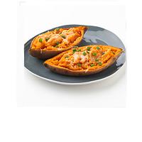 Halve sweet potato and scoop out flesh. Mash flesh with cayenne pepper and brown sugar; spoon potato mixture back into skin. Sprinkle each potato half with mozzarella cheese and microwave until cheese melts; garnish with chopped chives.