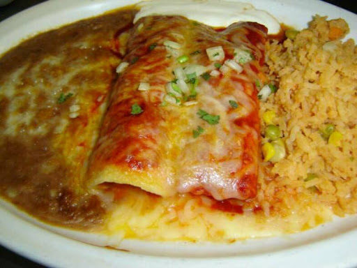 ENCHILADAS ROJAS GRATINADAS RELLENAS DE CARNE Y ARROZ