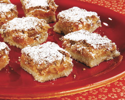 Preheat oven to 350°. Rinse the apricots. Place in a saucepan and cover with water. Bring to a boil and cook for 10 minutes or until tender. Drain well. Cool and cut into small pieces. In a mixing bowl, combine the butter, sugar and flour. Blend together until crumbly. Press into the bottom of a greased 9-inch square pan (Pat uses a 9x13 pan to make a thinner bar and the crust still holds up well). Bake at 350° for 15 minutes. While the crust is baking, prepare the topping. Beat the eggs and add the brown sugar gradually. Add the flour, salt, baking powder and VANILLA and mix well. Fold in the nuts and apricots. Remove the crust from the oven. Spread the topping over the crust, return to the oven and bake for approximately 30 minutes more. Cool, then cut in bars or squares and sprinkle with powdered sugar.