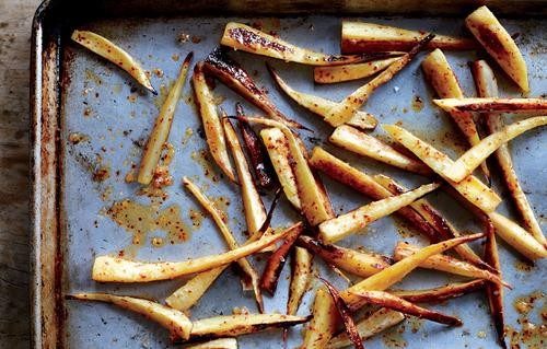 Drizzle chile-honey butter over parsnips and toss to coat.