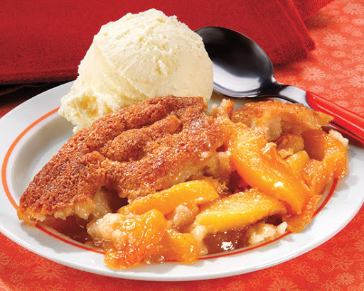 Preheat oven to 350°. Mix the peaches with 1 cup of the sugar. Set aside. Melt the butter in 2-quart baking dish or pan. In a mixing bowl, combine the remaining sugar, flour, baking powder, salt, CINNAMON, VANILLA and milk. Mix well. Pour the mixture over the melted butter. Do not stir. Place the sugared peaches with any accumulated juices on top of the batter. Do not stir. Bake at 350° for about 1 hour. The batter will rise to the top while baking and become crisp and brown. Great served with a scoop of vanilla ice cream.