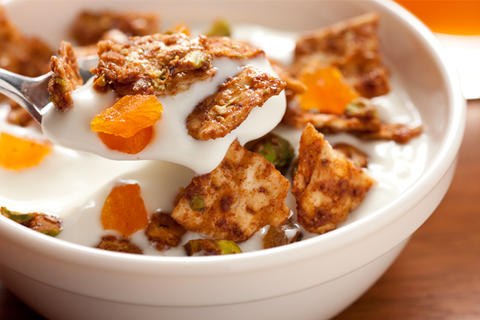 Crumbled sheets of matzo replace standard oats in this Passover-friendly version of granola. To make it, toss matzo pieces in a buttery maple syrup glaze spiced with cinnamon and ginger, and then bake with pistachios until crisp. Chewy dried apricots and golden raisins are mixed in at the end for texture and sweetness. Serve this unexpected take on granola with yogurt or milk, or snack on it straight from the container. With its satisfying crunch and sweet flavor, it may become your go-to granola year round.