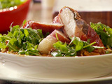 To serve, slice meat on bias and pile on Wild Mushroom Broken Spaghetti Risotto with Arugula and Hazelnuts.
