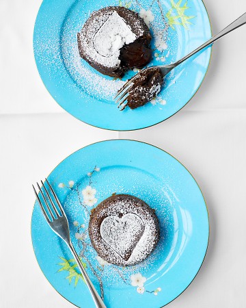 Bake until a toothpick inserted 1/2 inch from edge of ramekins comes out clean, and a toothpick inserted in center comes out wet, 10 to 12 minutes (do not overbake). Cool 10 minutes on a wire rack. Run a knife around inside of ramekins to loosen. Invert cakes onto serving plates. Dust with sugar; serve immediately.