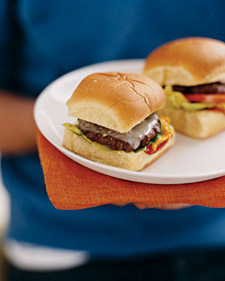 * Preheat indoor or outdoor grill or grill pan to medium-high heat. Rub patties lightly with extra virgin olive oil and sprinkle with salt and freshly ground pepper to taste and cook 3 - 4 minutes per side or until just done.