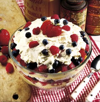 3.Alternate layers of cake, pudding mixture, berries and whipped topping in a clear glass bowl, ending with whipped topping.