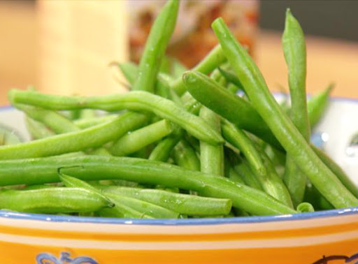 Bring a couple inches of water to boil in a large shallow pan; salt water and cook green beans 3-4 minutes to tender-crisp. Cold-shock beans in ice water and drain well; reserve.